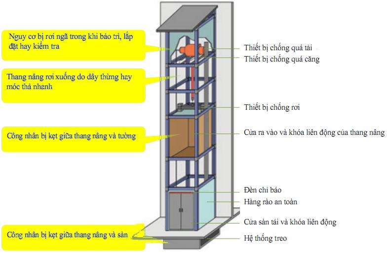 – Thang nâng rơi trong khi công nhân đang ở bên trong do xích, móc hay dây bện bị đứt.