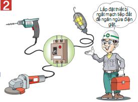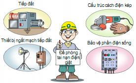 • Lắp đặt thiết bị ngắt mạch tiếp đất, tiếp đất: tiếp đất cho máy điện, thiết bị điện; lắp thiết bị ngắt mạch tiếp đất; sử dụng thiết bị cách điện kép nếu là thiết bị di động.