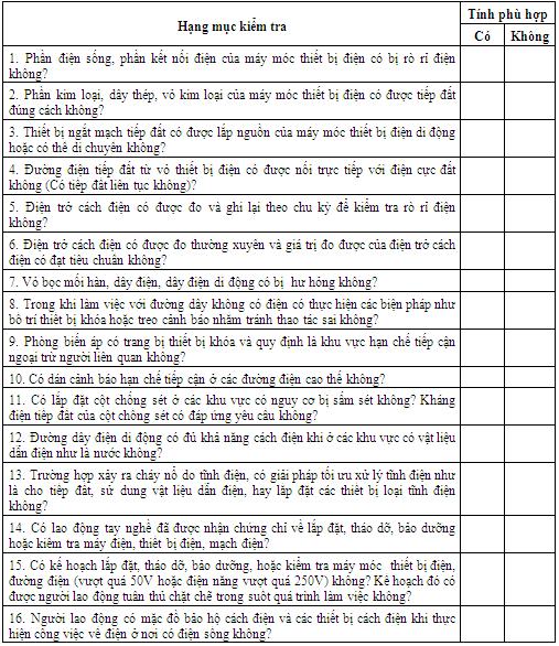 Danh mục kiểm tra giám định an toàn: