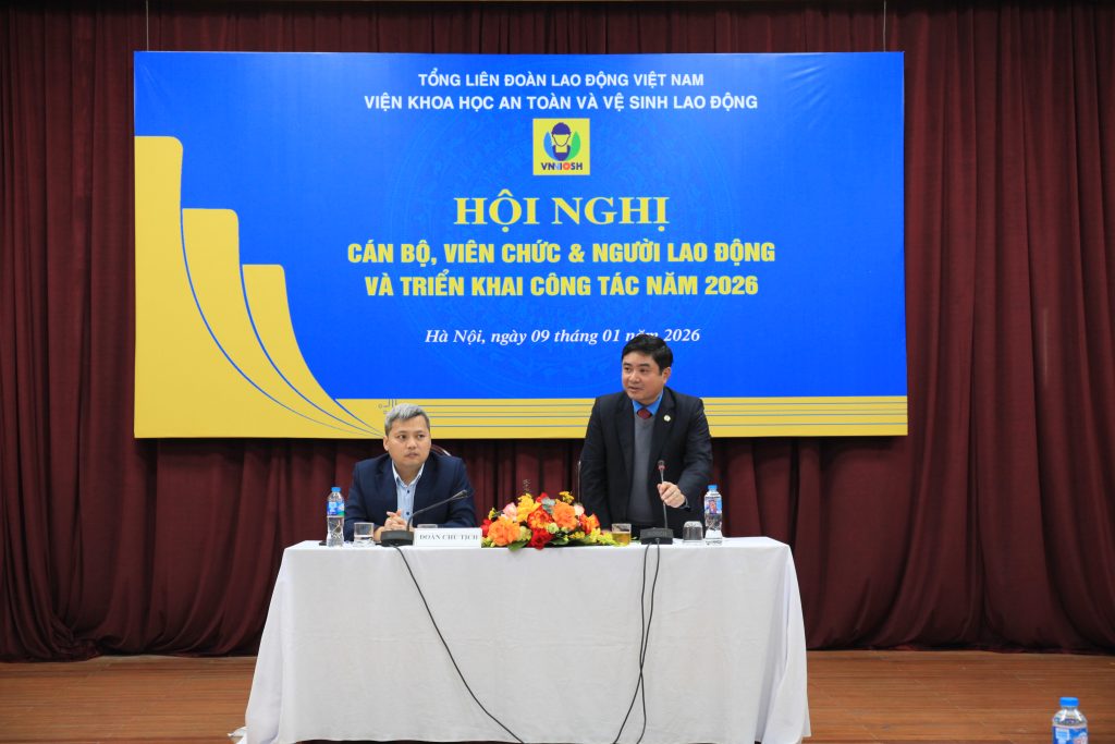 Sáng ngày 09/010/2026, Viện Khoa học An toàn và Vệ sinh lao động đã tổ chức Hội nghị cán bộ, viên chức, người lao động năm 2025 và triển khai công tác năm 2026. Hội nghị được thực hiện theo hình thức trực tiếp tại trụ sở Viện, số 99 Hàng Lọng (Trần Quốc Toản cũ), Hà Nội và kết nối trực tuyến với hai điểm cầu Phân viện tại Đà Nẵng và TP. Hồ Chí Minh.